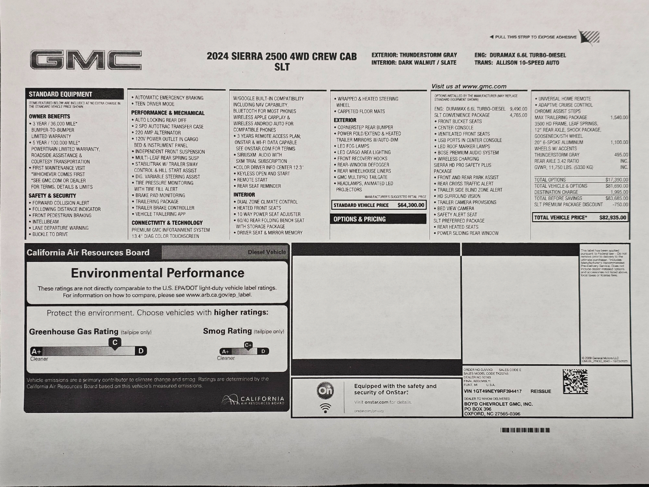 2024 GMC Sierra SLT 4wd...*** 6.6L Duramax Diesel/10-spd Allison Transmission ***...1-Owner/Locally Owned...Thunderstorm Gray with Dark Walnut/Slate Interior...*** 3500 HD Frame/Leaf Springs/12in Rear Axle/Shock Pkg./Gooseneck-5th Wheel ***...Etc...Please refer to our website for the original window sticker and more pictures.